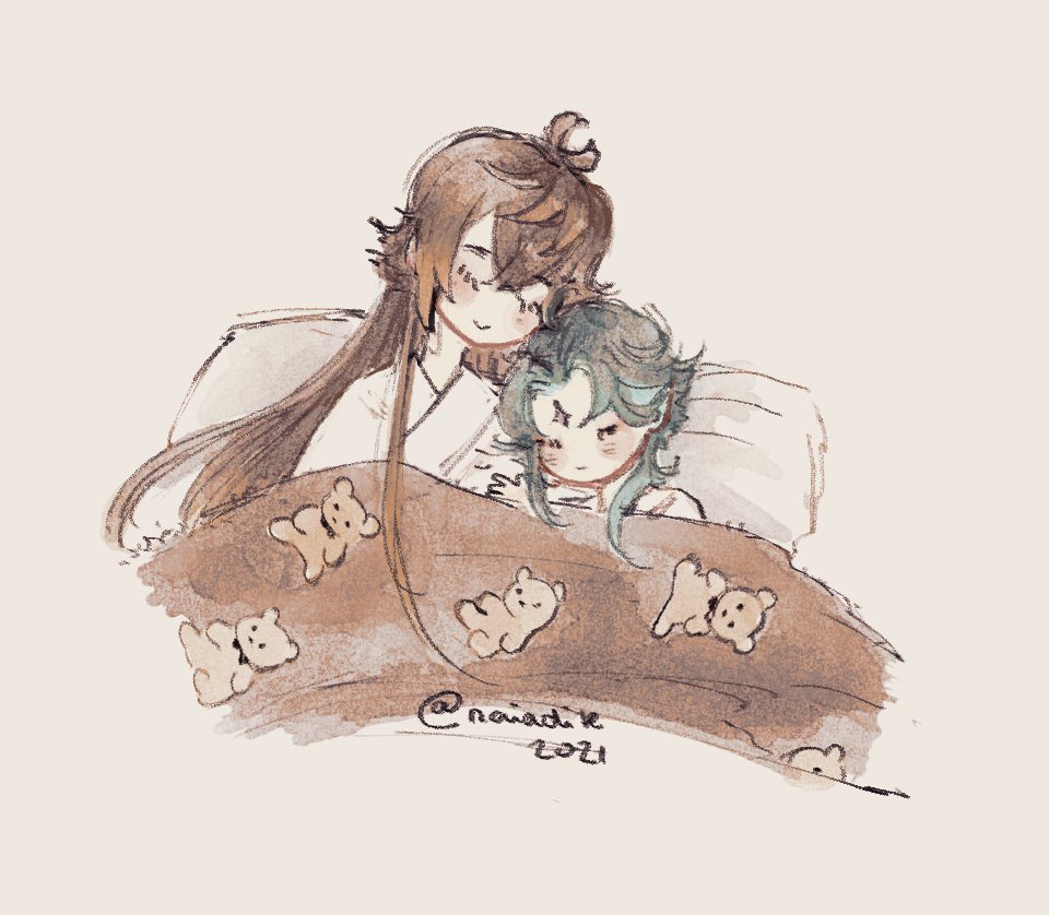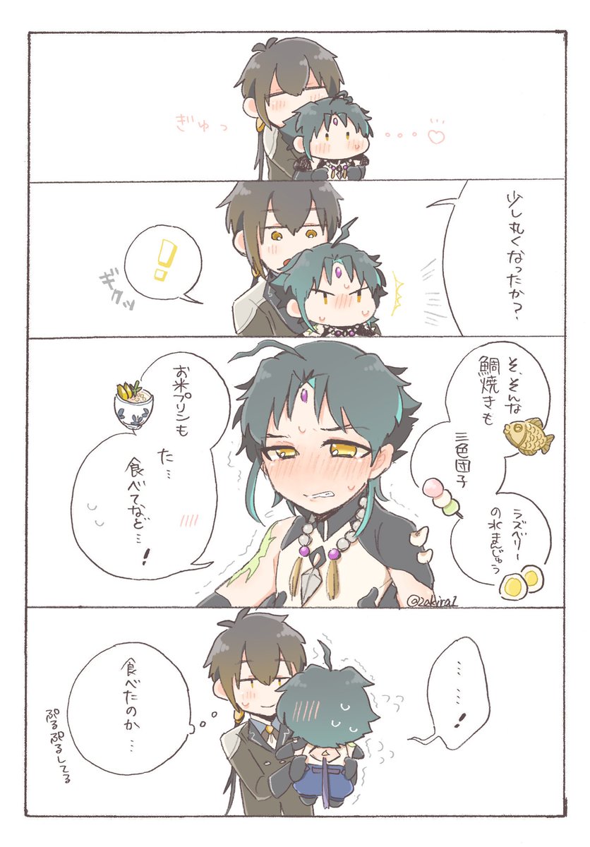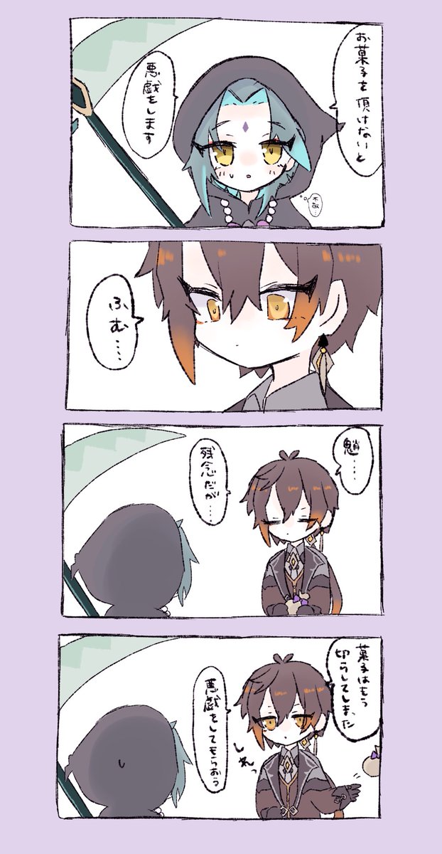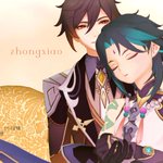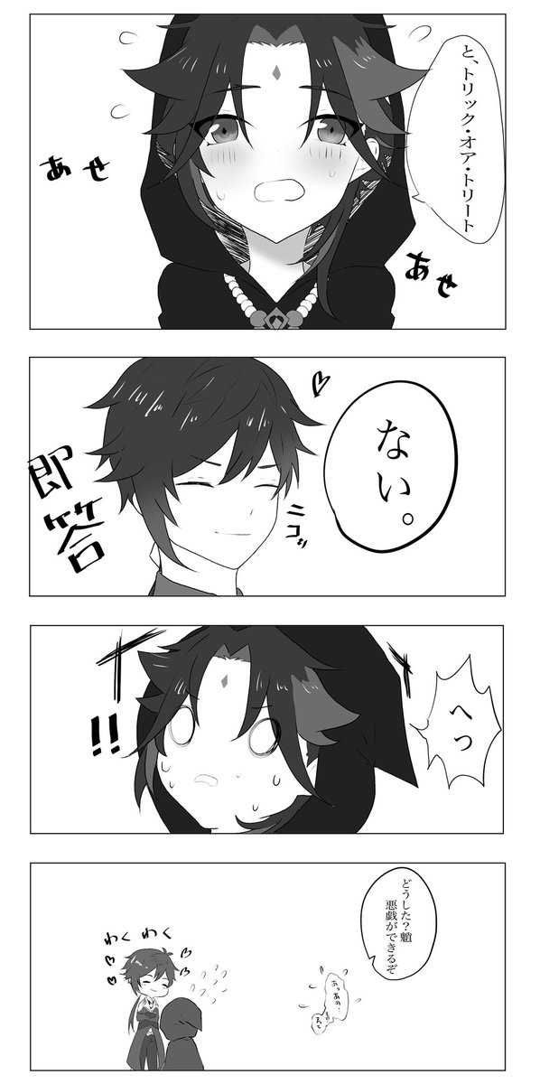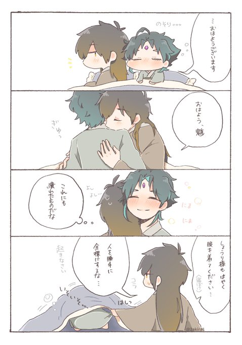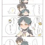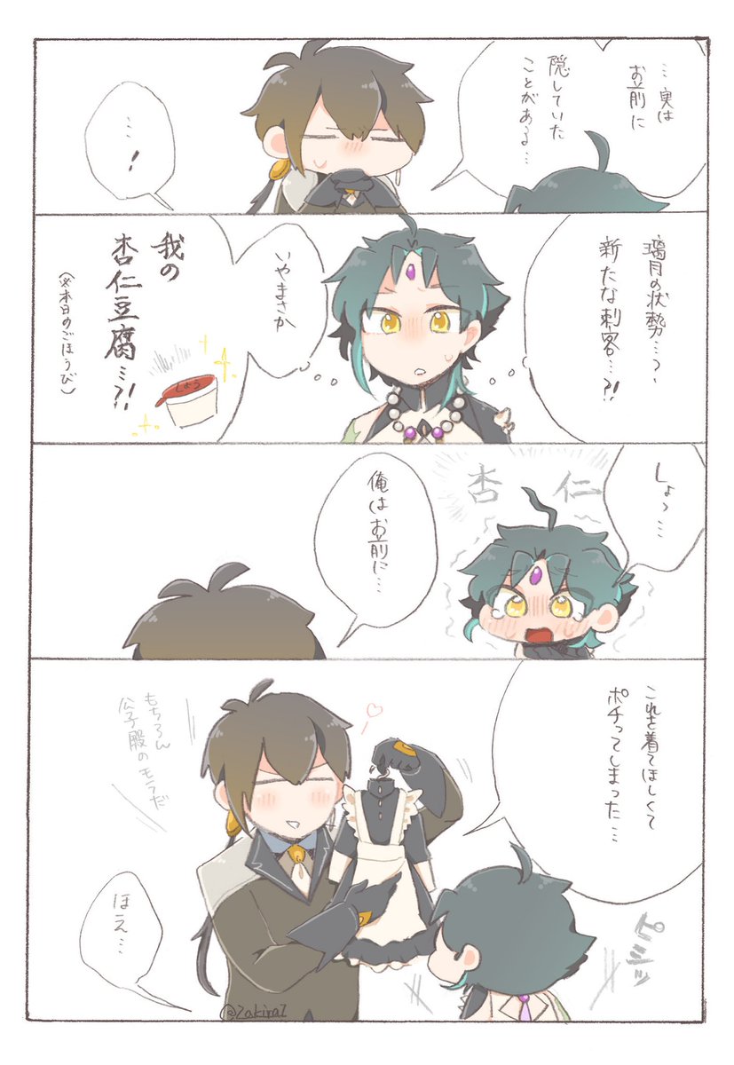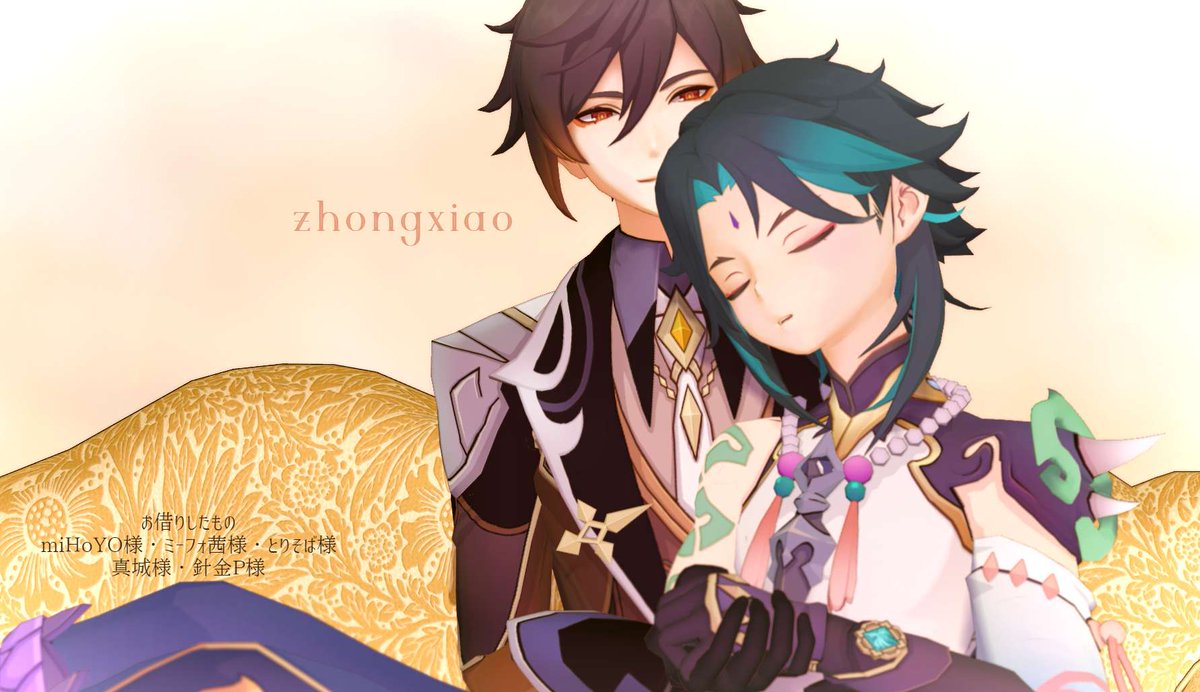 【お題】「お願い」 2人がベッドかソファーに座ってるシチュです… 隣に魈くんいるんですけど、魈くんの表情はご想像にお任せします…()♡ (きっと断れなくて、戸惑って、顔真っ赤にしてるかもしれません、、んふ 意味が分かってなくて、スン…も良いですね🥰) #鍾魈ワンドロワンライ #zx1d1w