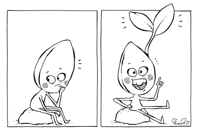 Сегодняшний #инктобер Sprout, он же росток. Вообще по смыслу этот рисунок прям продолжает вчерашний, а по стилю ещё и луну - там тоже были ростки, помните? #инктобер2021 #inktober2021 #inktober