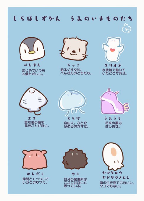 【お知らせ】 #しらほしずかん LINEスタンプ第3弾を発売しました!! ゆるっとかわいく使いやすい40種をそろえました🐧🦦 ご購入はこちらから↓ store.line.me/stickershop/pr…