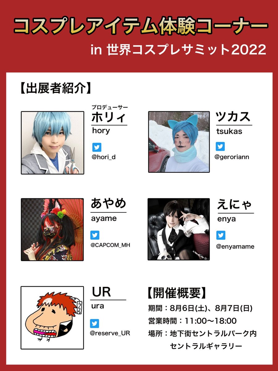 【告知2】今年はコスサミ20周年と言う事で! 何と!ホリィのプロデュースする、見て触って体験出来る『コスプレアイテム体験コーナー』がコスサミに登場しますよ!(*•̀ᴗ•́*)و🎊 涼しい地下街での催し物になりますのでぜひ遊びに来て下さいね✨ #コスサミ #コスサミ2022 #コスプレアイテム体験 twitter.com/cosplay_summ…