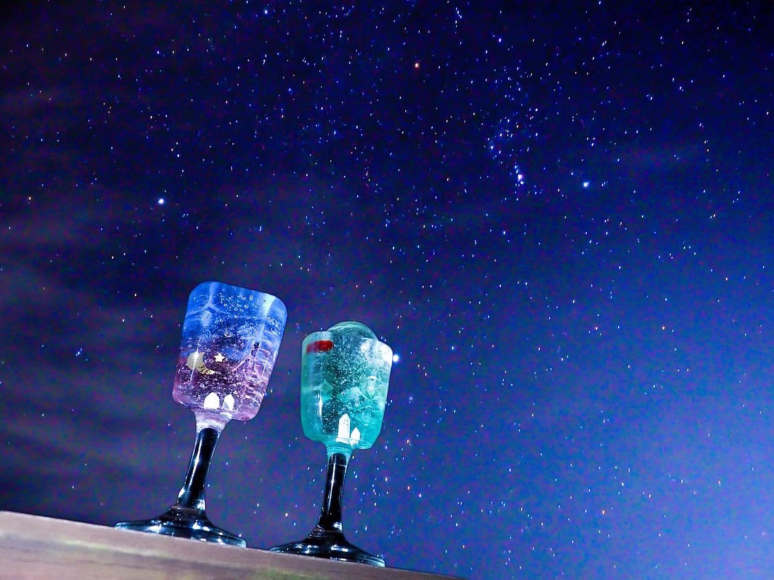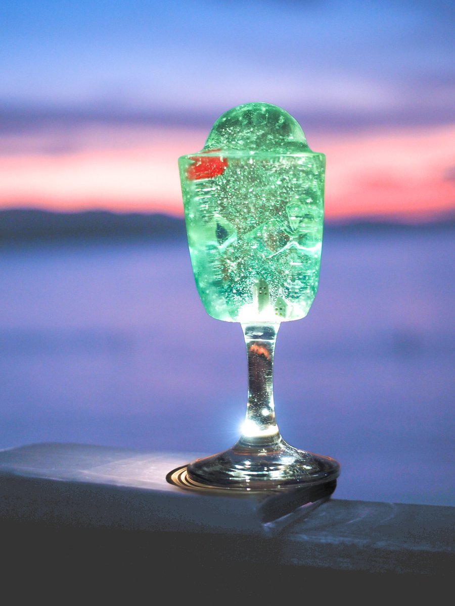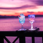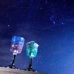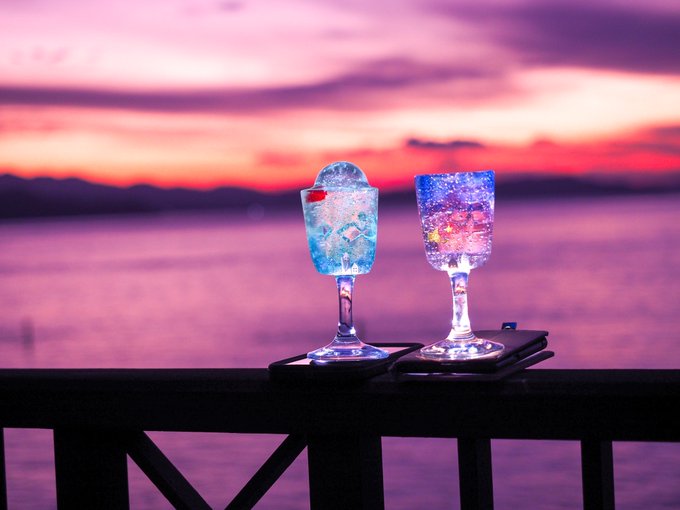 #Twitterをしている全ての人に届け私の作品 ガラス作家のコロロ硝子です 全てガラスで作った 【朝焼けソーダ水のまち】 【メロンソーダのまち】 気泡が沢山!しゅわしゅわソーダ水は、どんな味がするのでしょう…??💕 よく見ると、小さなお家や月や星入っています✨