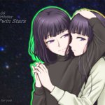明日はマジョと琥珀の誕生日🥰 昨年のマジョ誕からお誕生日絵を描き始めました。 昨年の絵。背景は双子座です。 #久条翡翠誕生祭2020 #久条琥珀誕生祭2020 #女子高生の無駄づかい #マジョ