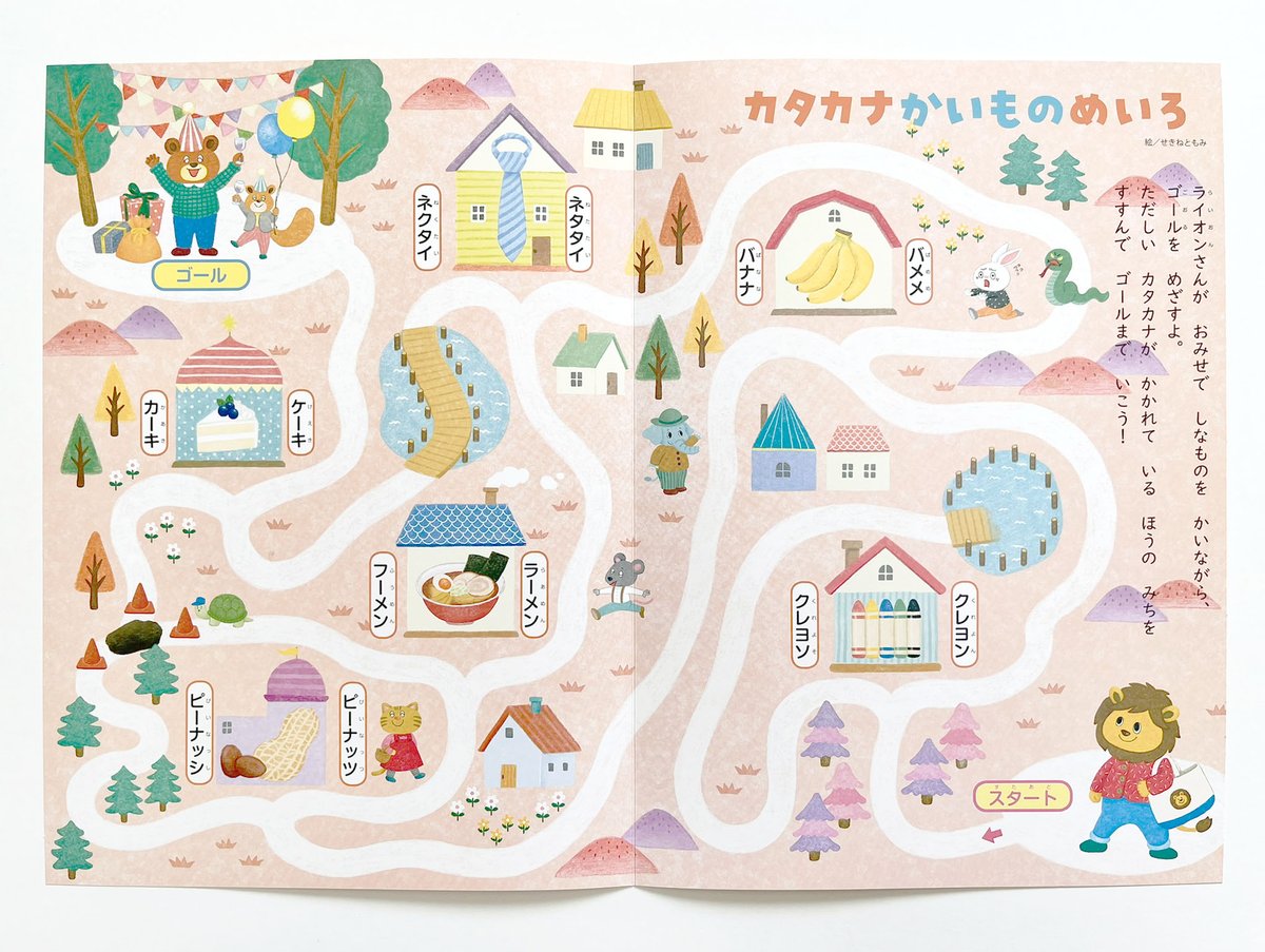学研さんの保育絵本『なんで?』裏表紙の「つながる!ぎょうじめいろ」のページ。1年間の連載が終わりました! そこで、全てを並べてみました!本来は縦につながるのですが、つなげて見せるのは難しいので、普通に並べてみました。 #illustrator #イラスト #がっけんつながるえほん #めいろ