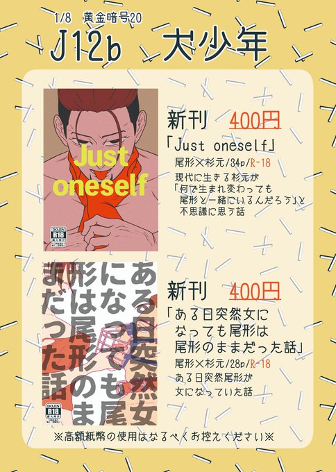 1/8 黄金暗号20 尾杉プチ J12b 犬少年 お品書き 新刊2種類と無配漫画(画像2枚目が表紙)持って行きます!開場直後は買い物に出掛けているのでゆっくりお越しください🙇♂️ 新刊サンプルはツリーにて (素敵タグお借りします…!) #百の傷痕一の銃弾3