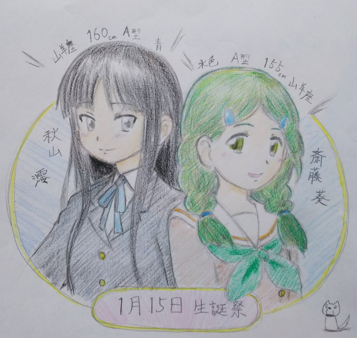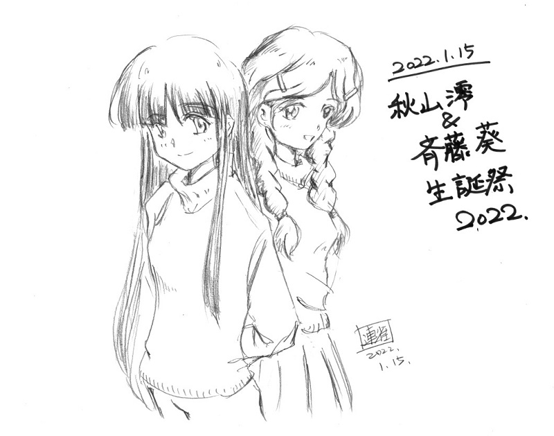 秋山澪さん、斎藤葵さん、お誕生日おめでとう! 寝る間際なので急ぎですがお祝い絵を描きました。 中の人つながりで一緒にお祝いさせてくださいw #けいおん #秋山澪生誕祭2022 #響けユーフォニアム #斎藤葵生誕祭2022