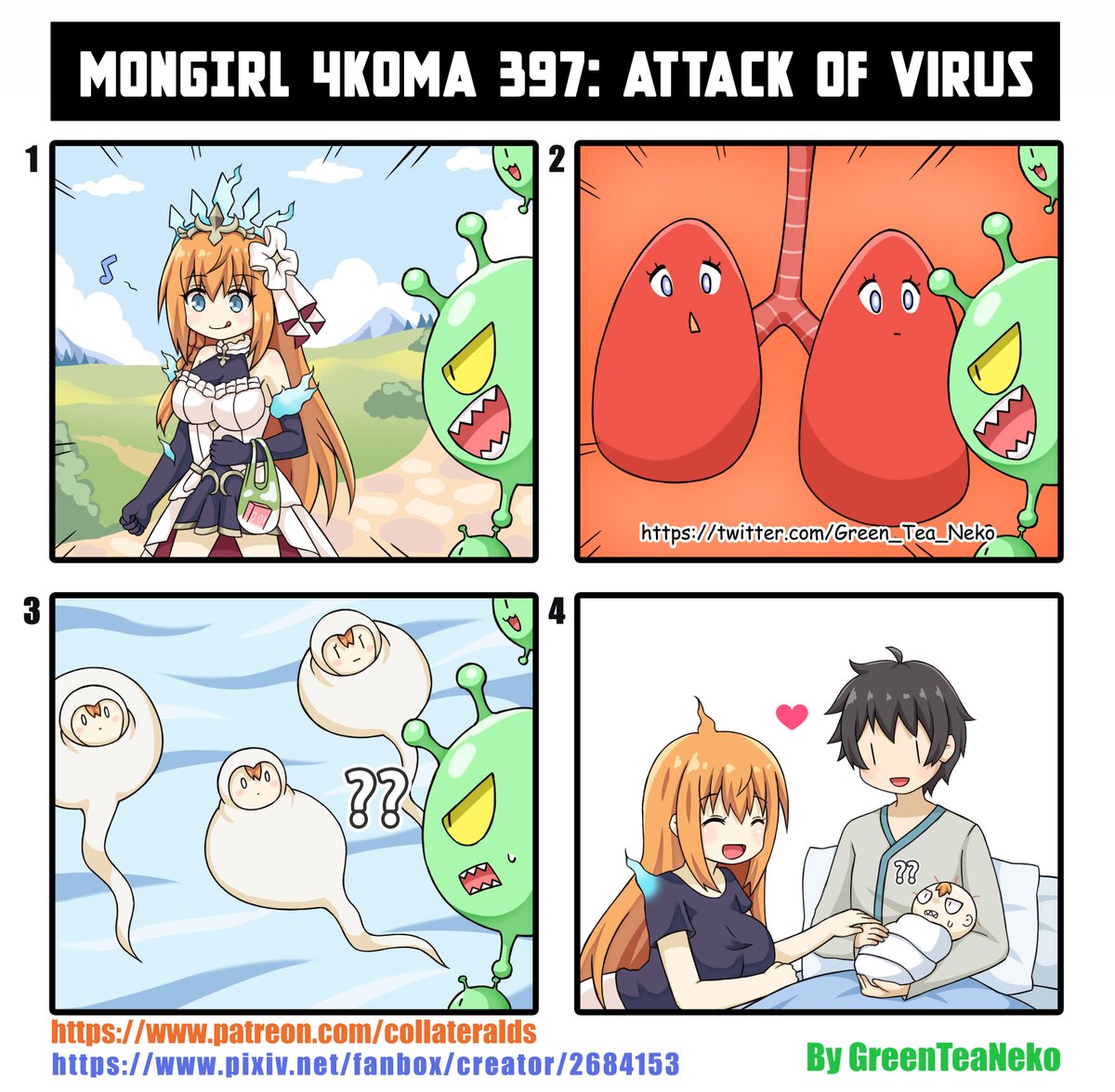 モンガール4コマ397 - 進撃の病菌 MonGirl 4koma 397: Attack of Virus 魔物娘4格漫画397 :精击的病毒 patreon.com/collateralds pixiv.net/fanbox/creator…