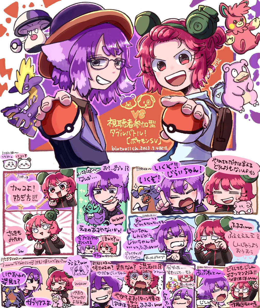🐻🐶vs視聴者参加型ダブルバトル!【ポケモンSV】配信より🐟 ひさしぶりのしるじら配信も、ダブルバトルもとにかく嬉しくて可愛くて!! とってもとってもたのしかったです🥳✨ #bintrollFA #じら絵ちゃん