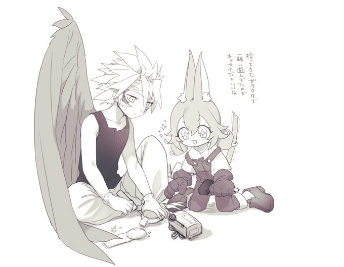 > いつも楽しく拝見させていただき、ありがとうございます。 ロリキットのおにいちゃんしてる男の子シュライグのイラストを、v… #odaibako_8vulture8 odaibako.net/detail/request… 趣旨が違うかもですが、お留守番中に一緒に遊んでるイメージで描きました、お題ありがとうございました