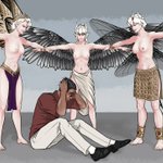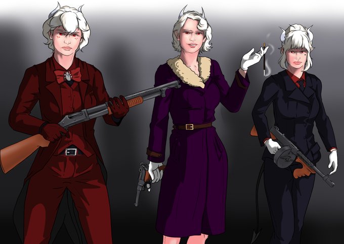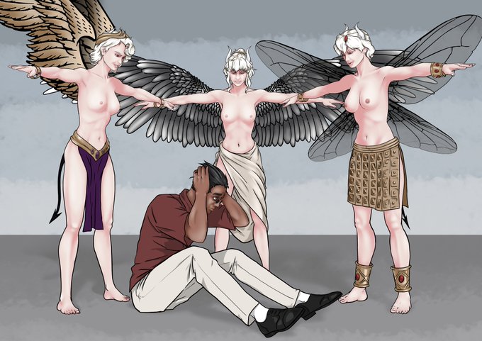 "We thought you wanted demon tiddies?" (Astaroth as Ishtar, Lucifer as Helel, Beelzebub as Ba'al zebub) #Helltakerfanart