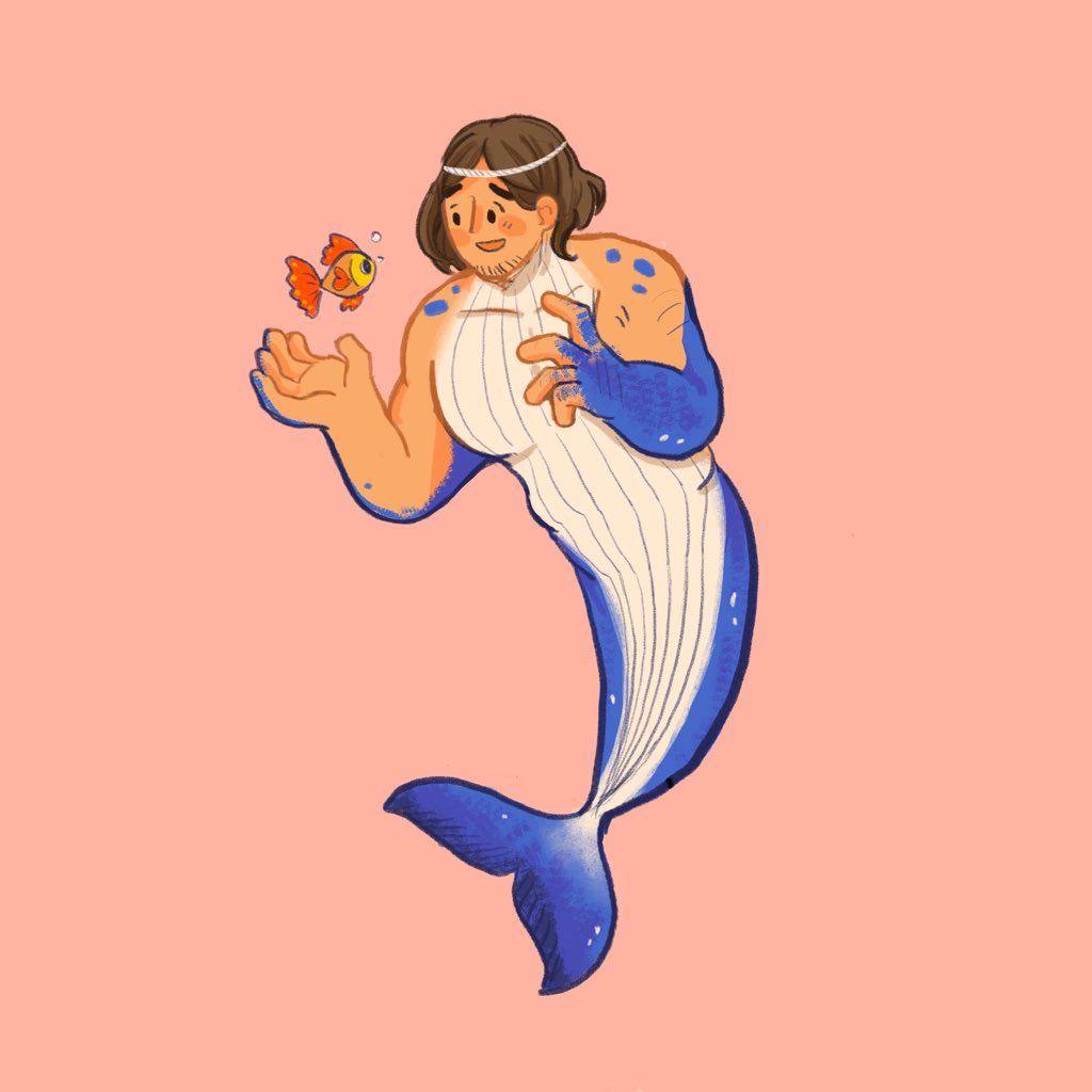 Day 16 : Whale Azumane Asahi Making a new friend 🐳🐠 #mermay #mermay2021 #haikyuufanart #azumaneasahi #asahi