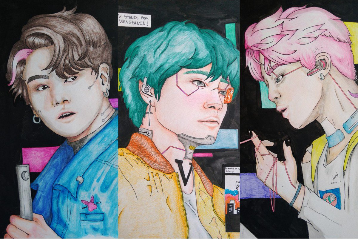 `. happy bangtan halloween 🚨 cyberpunk bts fanart for halloween ` `. #btshalloween @BTS_twt #btsfanart