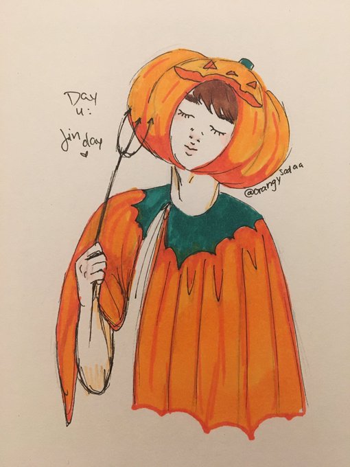 #Bangtober D-4 Jin day!! I drew my icon cause hES so swEET 🧡🧡🧡 #bts #btsfanart #btsarmy #Jin #btshalloween #pumpkin more like #pumpjin 😖😖