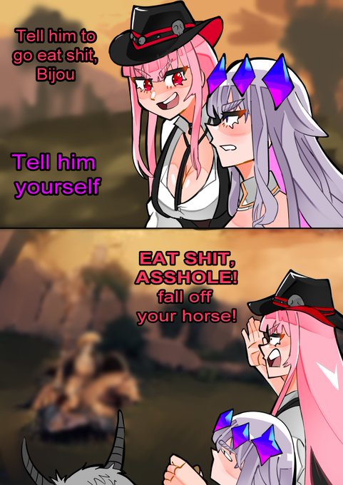 alt kiara and calli where calli is sick of being summoned each time kiara reincarnates #KFPicasso #callillust #takamori