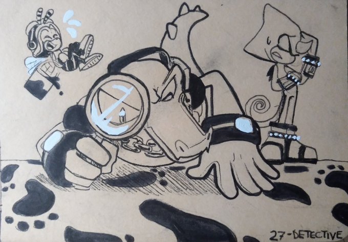SONICTOBER - DAY 27 DETECTIVE #sonictober #inktober2020 #day27 #sonicthehedgehog #detective #teamchaotix #vectorthecrocodile #charmythebee #espiothechameleon #ink #drawingoftheday
