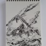 Jour 13 : Espèce / Kind Réinterprétation d'un exercice en art plastique, durant ma 6e : créer une chimère. J'avais fais tête de poisson chat, cou de vautour, pattes de canard et puce, corps de tigre et queue de scorpion. #inktober2022 #drawingoftheday #ink #art #dessindenfant