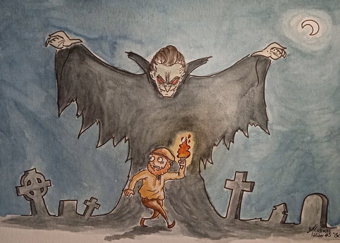 Deux malheureuses piqûres dans le cou, discrète signature du vieil aristocrate #inktober2022 (j'ai un peu oublié hier soir oups)