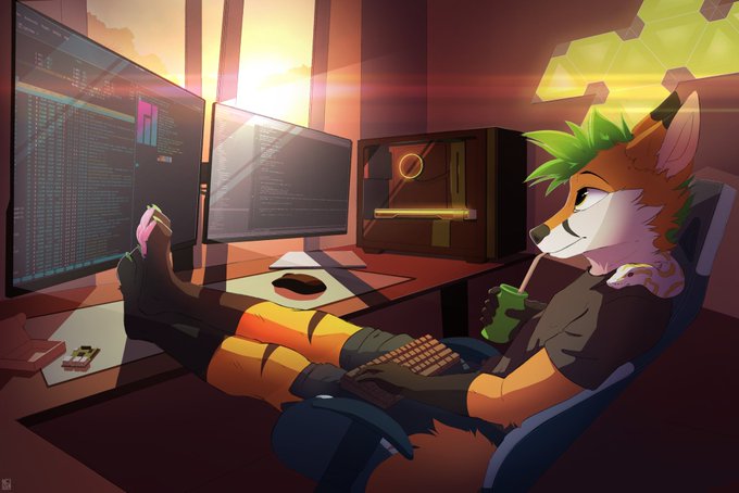 i made grover a sticker to text me when he’s coding!! lookit this fuckin nerd ❤️ #furry #furryart #furryartist
