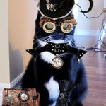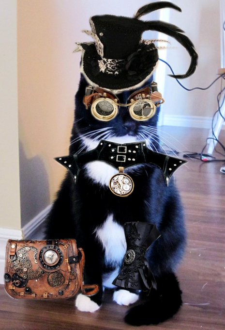 #steampunk #CoolCats #cosplay #fashion #hat #goggles #leather #timetravel #accessories photo magic wicked skillz by miss fairy Lynda. I can barely even believe how pawesome this pic is... I'm a fashionista cat!