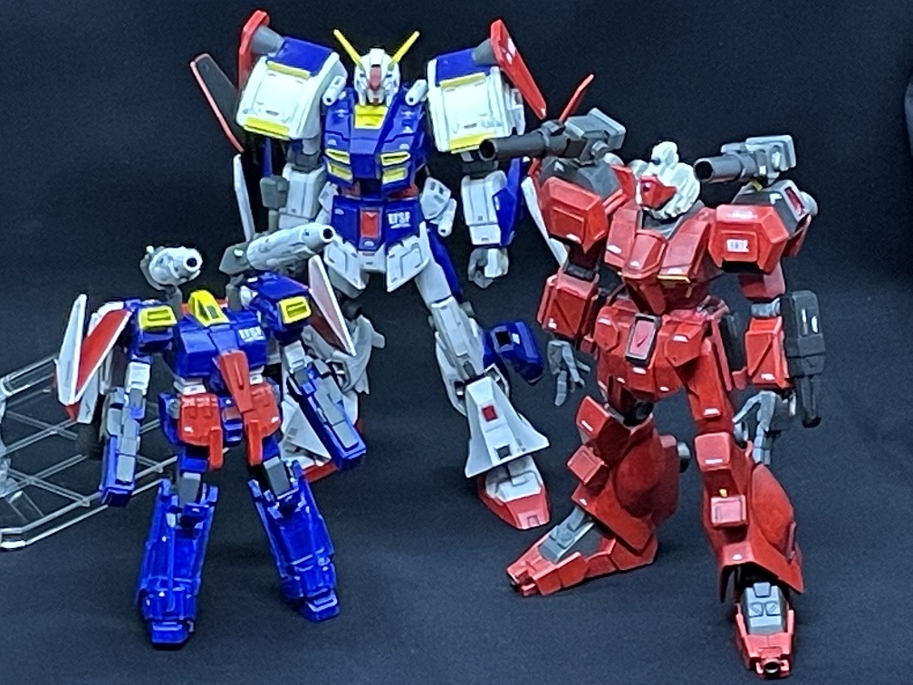 ラスト・サンの3基の主要MSでパシャリ。 さぁ、明日はいよいよ「DX」化して撮影、です(明日は早朝からお仕事なので今日はここまで~) #ラスト・サン #ガンプラ #ガンプラはどんな自由な発想で作ってもいいんだ #ガンプラの画像貼るとRTされると聞いて