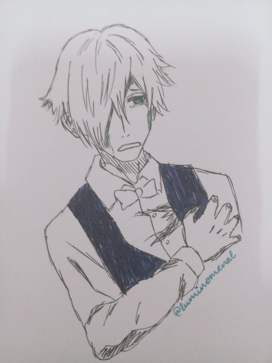day 2: today was a really sad day for me and my mood is just as sad so here's a sad scribble of decim feeling sad c': its also supposed to be just a redraw of an official art coz i had assignments and no ideas but i guess my sadness transfered here too #Inktober2019 #hazubandraw