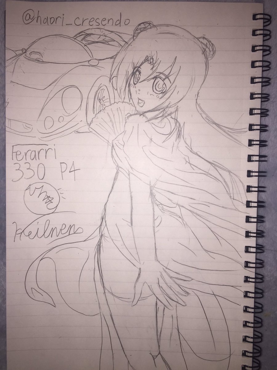 @haori_crescendo氏のチャイナ服姉さんを描いみたくて描いてみた(*´꒳`*) 昔のル・マンカーを添えて(*´꒳`*) #よその子 #マント女子 #Ferarri #330P4 #モタスポファンと繋がりたい #絵描きさんと繋がりたい