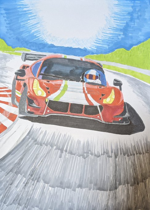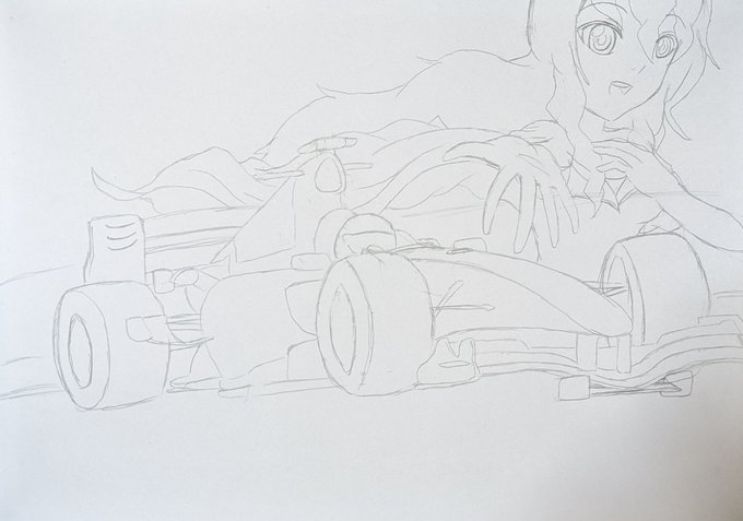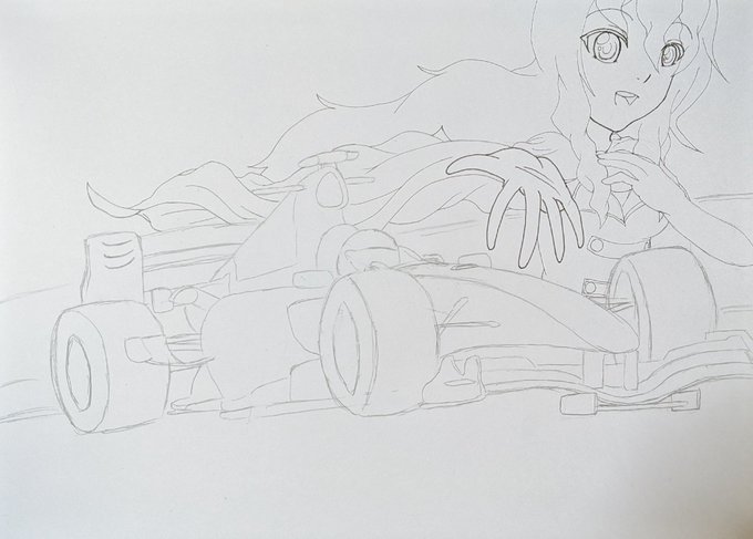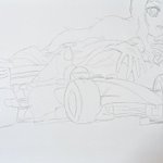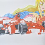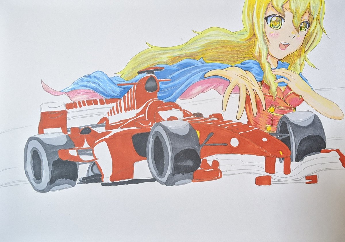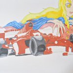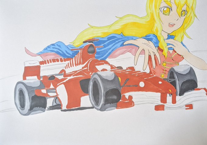アナログ絵進捗〜(*´ω`*) コピック+色鉛筆は無敵やな!d(*´ω`*) #マント女子 #Formula1 #Ferarri #F2005 #絵描きさんと繫がりたい #イラスト好きな人と繋がりたい