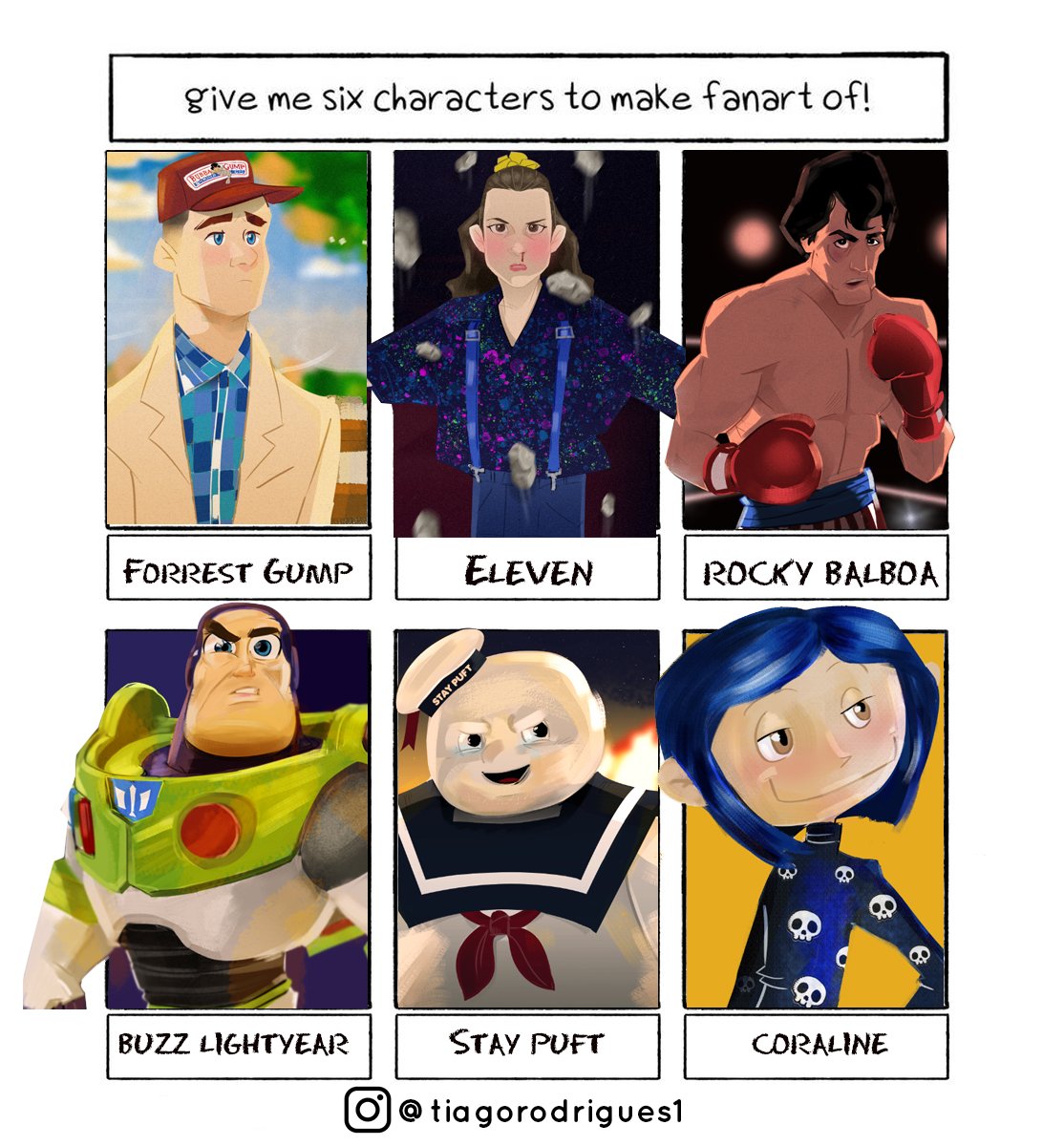 Fazer arte é um remédio maravilhoso para dias como os que vivemos.❤️ . . #sixchallengefanarts #sixfanarts #forrestgump #strangerthings #eleven #rocky #toystory #ghoustbusters #staypuft #coraline #characterdesign #photoshop #80s #90s #pop #popculture
