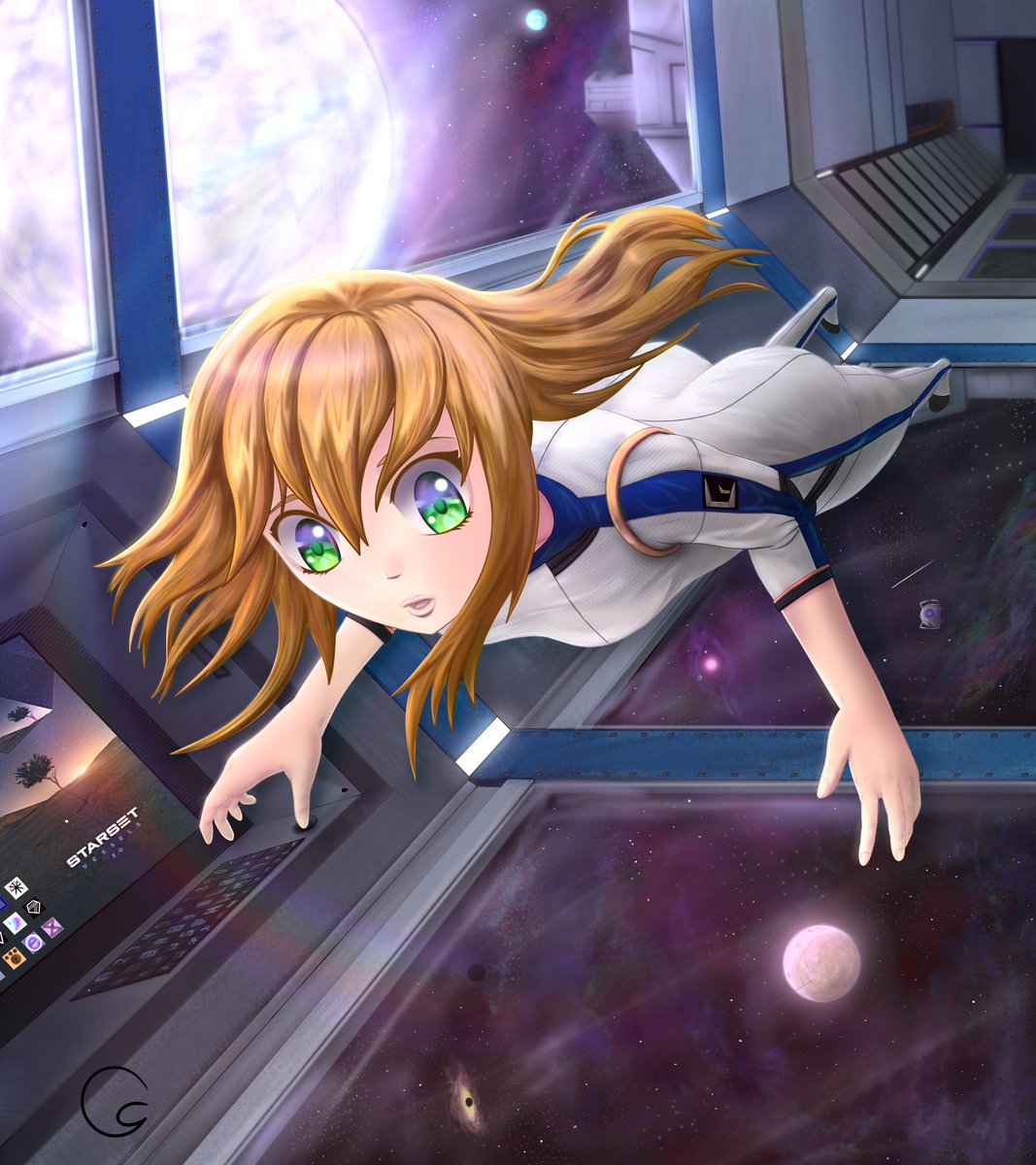 V1 is done! V2 will be in the works, but temporarily on halt due to vacation. But anyway... am I professional yet or what? 😎 #digitalart #anime #MediBang #Space #Galaxy #portal #FrameArms #coffeecat