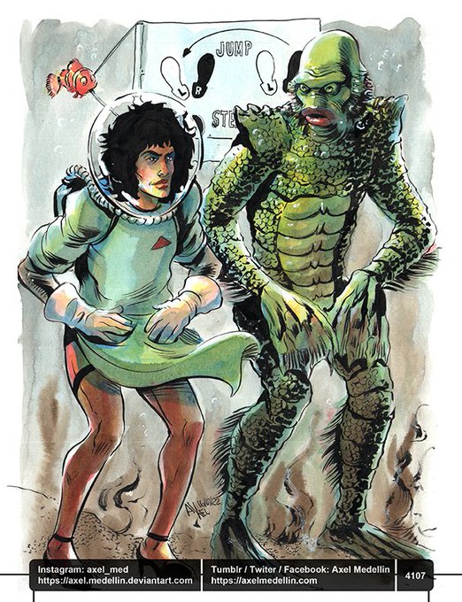 Creature From the Black Lagoon! Day 9 #creature #black #lagoon #moviemonster #monster #gillman #digitalart #digital #art #artwork #artist #inktober #artober #drawlloween #draw #drawing #inktober #photoshop #halloween #october #horror #opensea #nft #nftart #adobe #photoshop #wacom