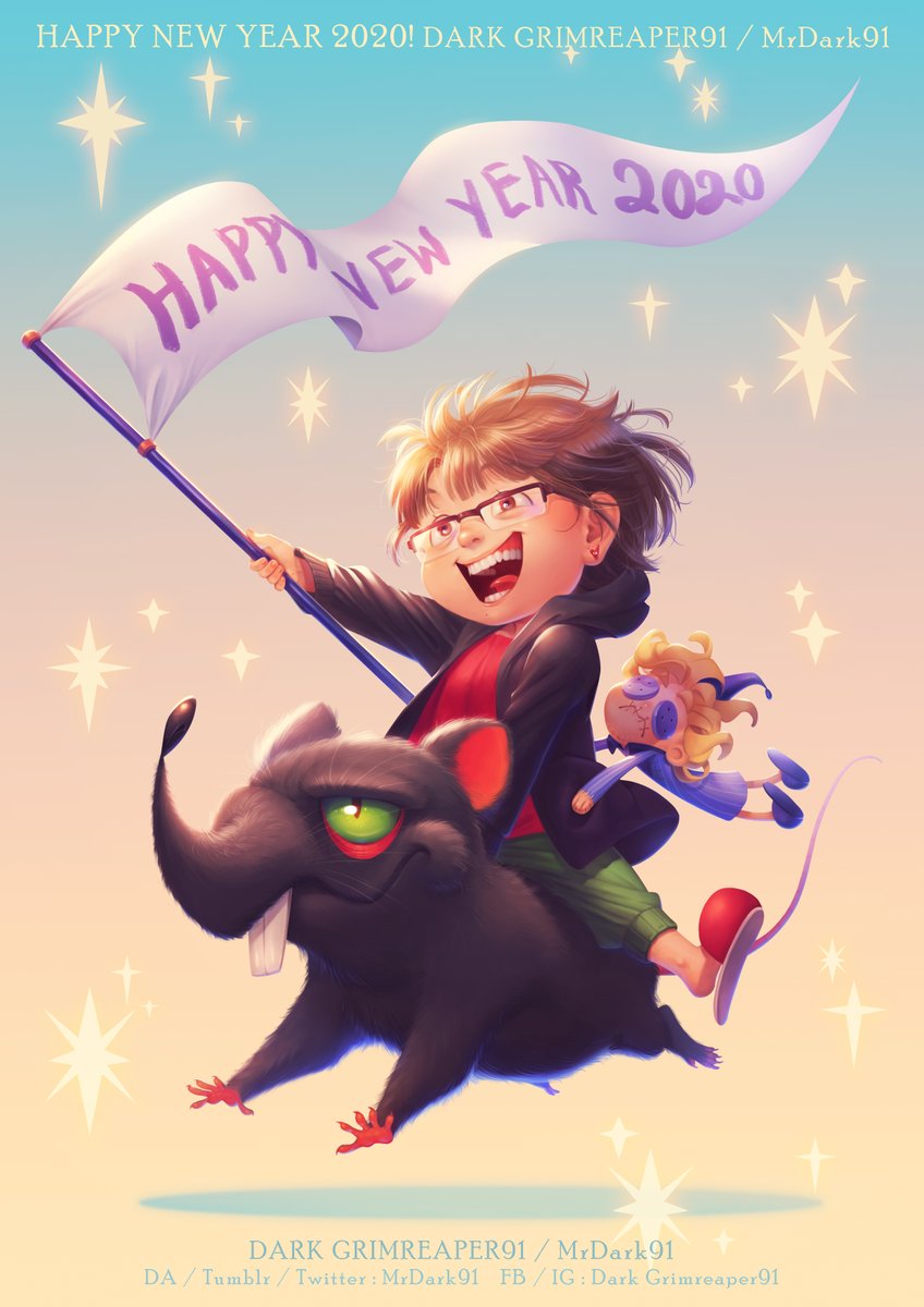 HAPPY NEW YEAR 2020! (Better late than never---I guess XD) This rat is Garlon, and the blonde haired doll is Keith. They are my OCs from my 2016 project, World end's pajamas. #originalcharacter #originalart #oc #cg #digitalpaint #2020NewYear #happynewyear2020 #2020yearoftherat