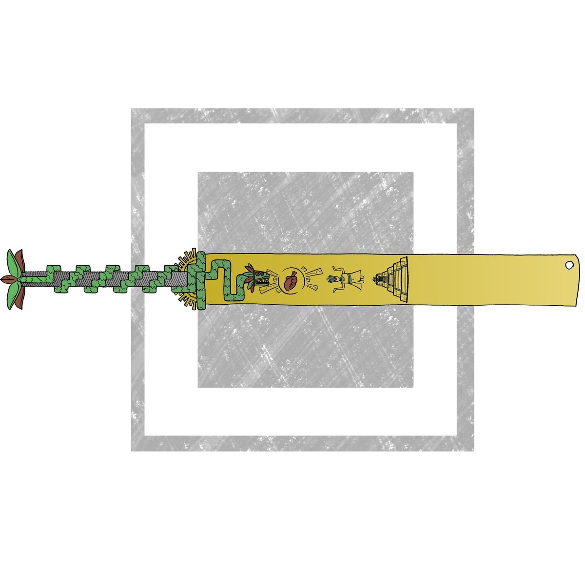 #Swordtember day 3. Prompts: Quetzalcoatl / Germanic Executioner Sword Its not centered, Iknow, but im tired lol. #sword #executioner #germanic #Quetzalcoatl #mesoamerica #gold #jade #sacrifice #motif