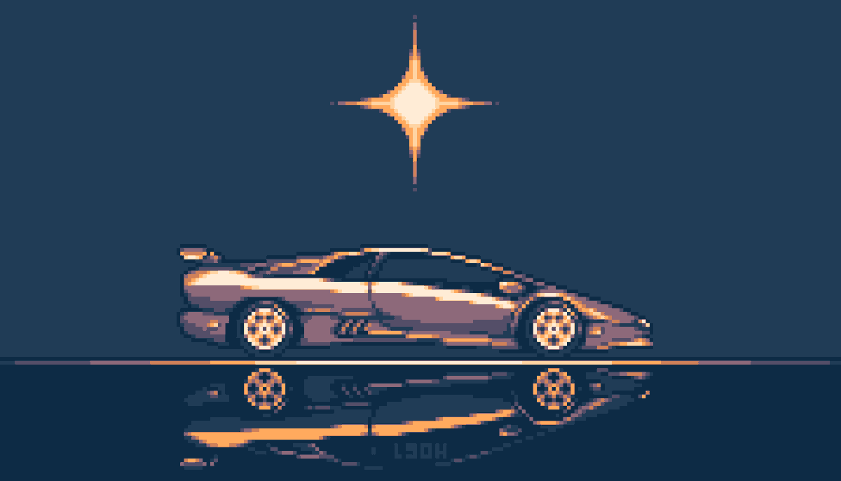 Today's @Pixel_Dailies theme, #Cosmic . A bit different for today's. The Lamborghini Diablo SE30 from Jamiroquai's Song - Cosmic Girl. Original Resolution: 224 x 128 px. #pixel_dailies #pixelart #ドット絵 #aseprite #digitalart #pixelartist #pixelartwork