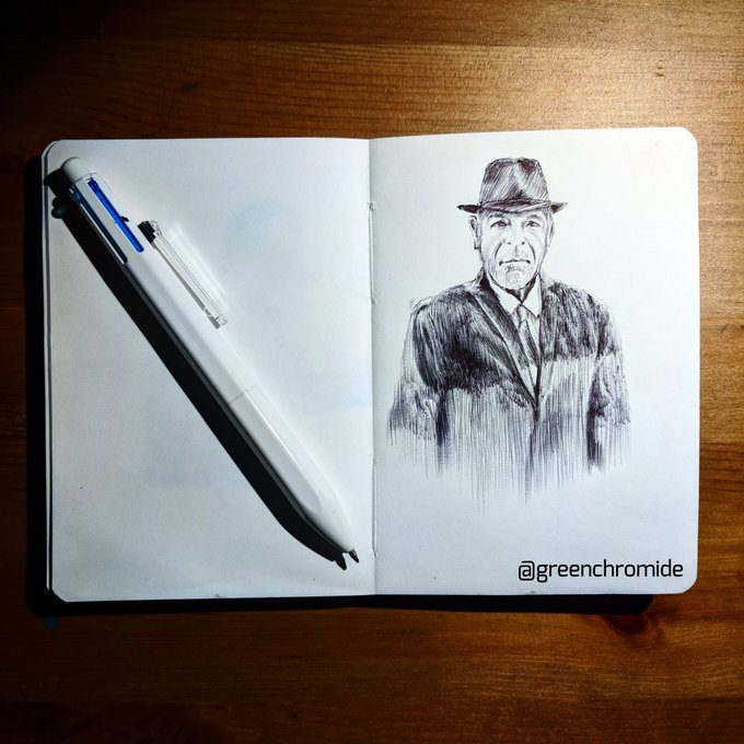« Act the way you'd like to be and soon you'll be the way you act. » #LeonardCohen I just finished to draw the portrait of that inspiring singer! ✍🏻 🎶 Espero que lo disfrute!❤️ #ArtistOnTwitter