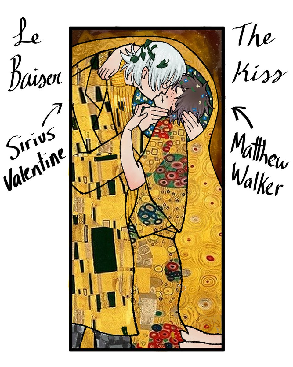 I drew my ocs Matthew and Sirius as The Kiss from Gustav Klimt #thekissgustavklimt #originalcharacter #rkgk