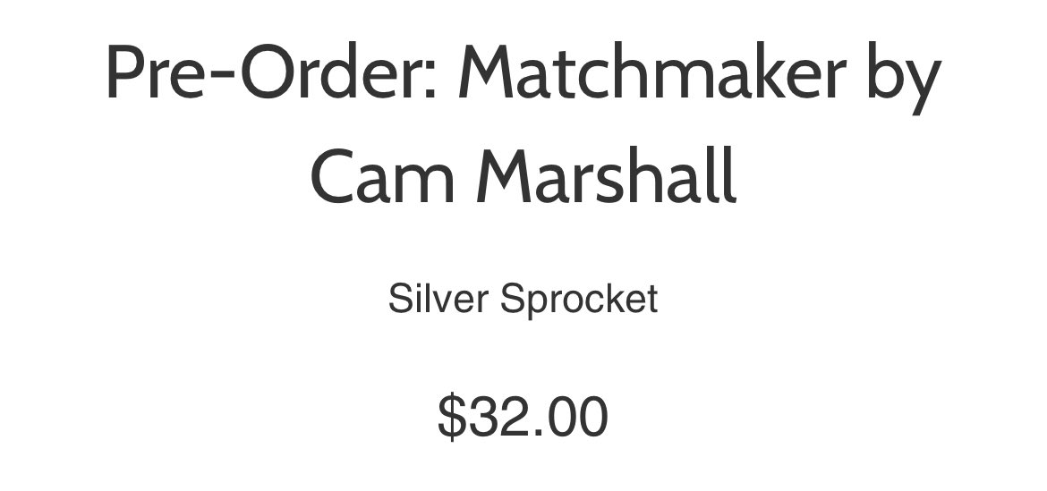 Hey everyone! Cam here with some super exciting news: Matchmaker is being published as a complete print collection, thanks to the amazing people at @ssbcpunk!! 280 pages, out this september, and up for preorder right now! This book is a dream come true! 💘 store.silversprocket.net/products/match…
