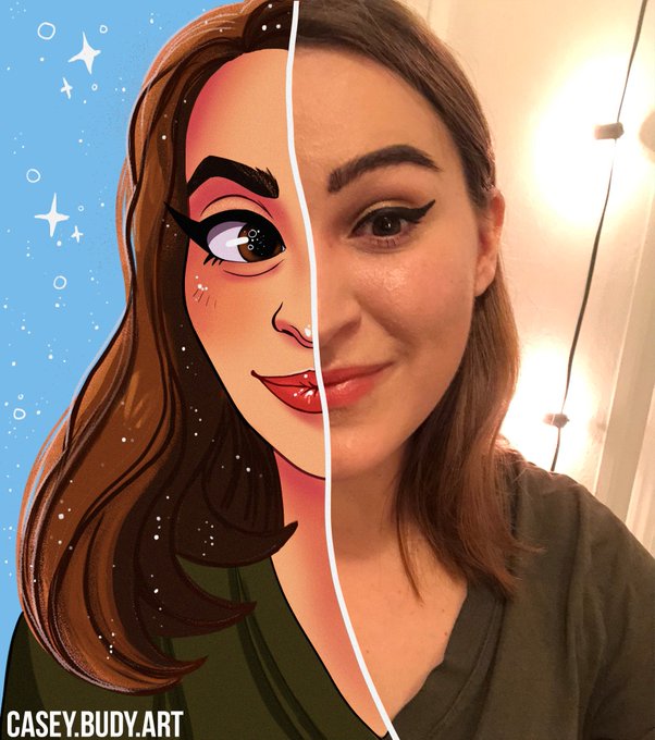 I saw the #toonme challenge going around on Instagram, so I decided to try it too! #toonmechallenge #procreate5 #procreateart #ArtistOnTwitter #DigitalArtist #myface #artist #digitalart