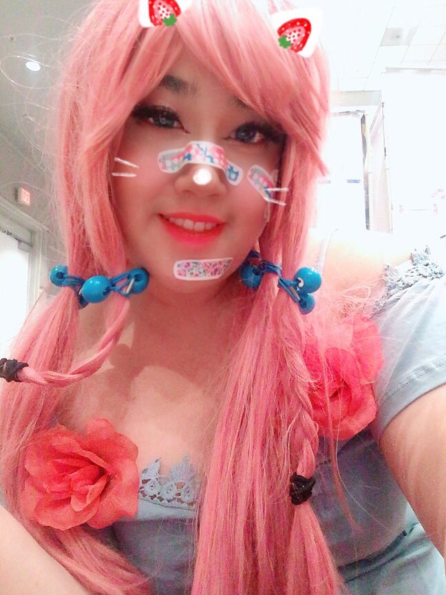 I became Yuno Gasai today. I def need a better wig for her. Double masked and ready to kick ass #cosplay #myface #yunogasai