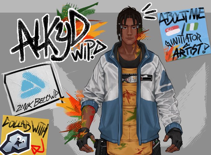 Meet my W.I.P Agent design Alkyd! A Singaporean Artist who brings power to life through his radiant paints! Full project link in replies! #Valorant #ValorantArt #OC