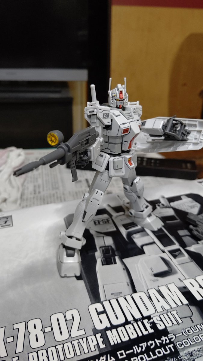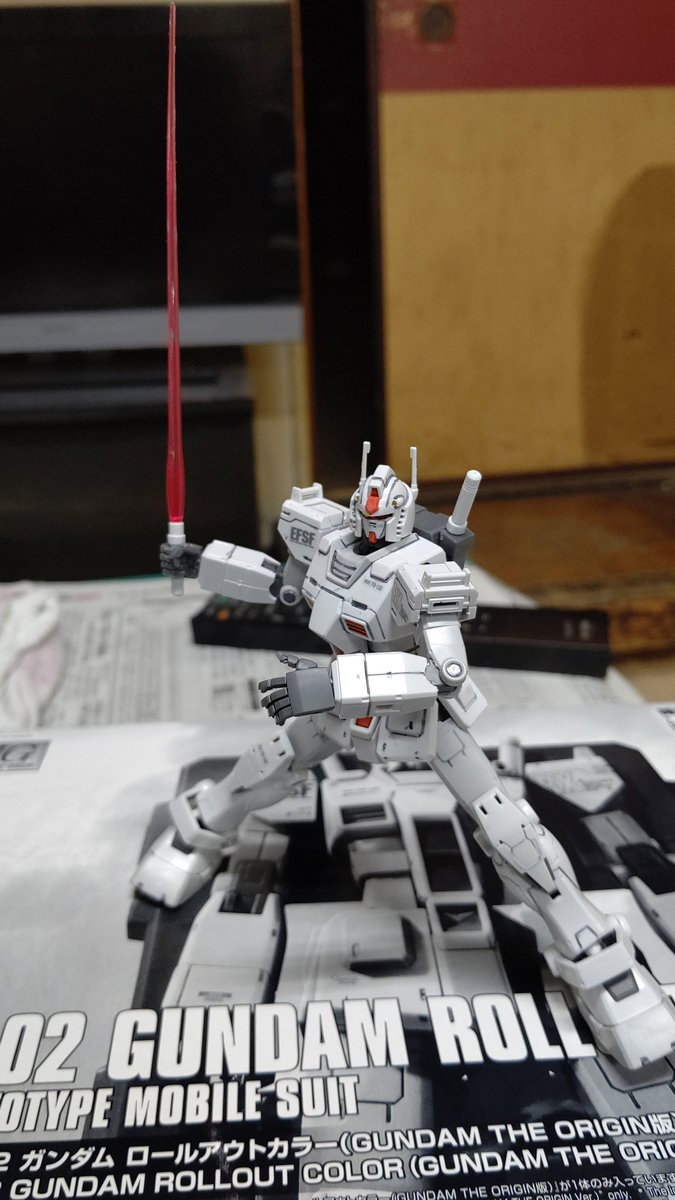 #ひとりプラモつくろーぜ #ガンプラ #機動戦士ガンダムTHEORIGINMSD ようやく、朝の交代までに、 HG RX-7802 GUNDAM ROLLOUT COLORVer 出来ました。