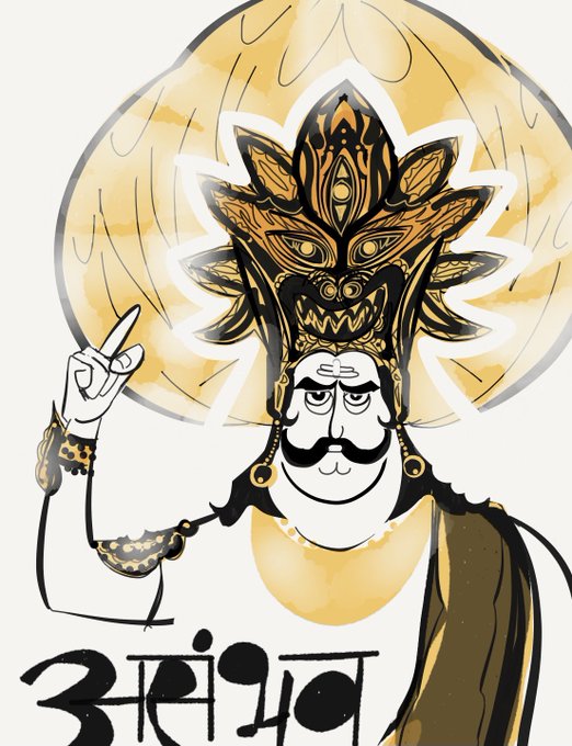 असंभव! . This Hindi word is inseparable from the character of Ravana from Ramayan, an iconic role played by Arvind Trivedi. He gave this word an identity that is unshakable. असंभव will forever belong to him. #arvindtrivedi #ravana #inktober2021 #indexfingersketch #xontent