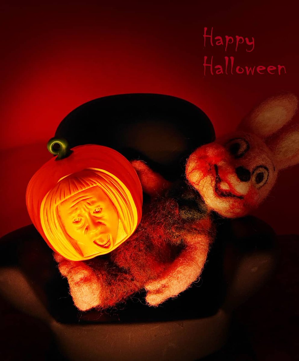 ウサギの体を作り直したので、余った体に新しい頭を作りました。サイレントヒルと言うゲームに出てくる撲殺兎のロビー君です。ハッピーハロウィーン👿 #羊毛フェルト #needlefelt #silenthill #robbietherabbit