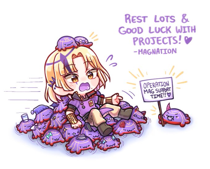 Please rest lots and take your time working on your projects💜 We'll always be right behind you, so don't think about cutting your break short! 🫵 Cheering you on always!! (Lovely lil mags featured here share the same sentiment!💜) #MagniOpus