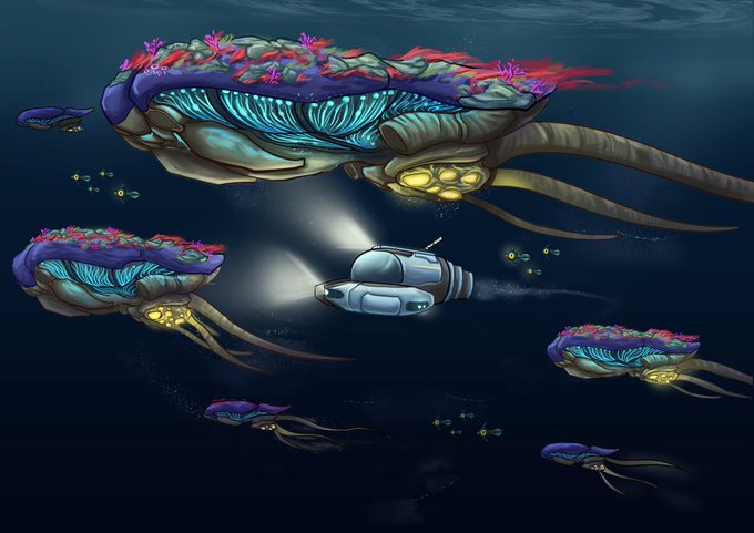 A tiny Seamoth in an adventure with a lots of Reefbacks! 🐋 A Subnautica fanart I did for this year mermay! 😇 #mermay #mermay2021 #mermaid #Subnautica #SubnauticaBelowZero #illustration #characterdesign #digitalillustration #sketches #digitalpainting #creaturedesign #Fanarts
