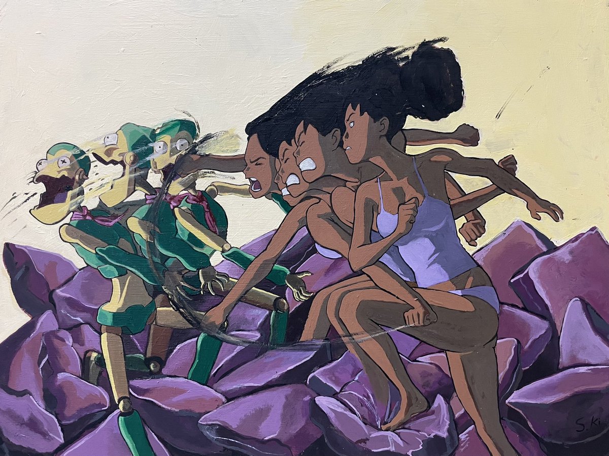 #Inktober2022, Day 22: #Heist. “The bomb, code-named ‘Kitchen Knife’, is on a hijacked train. (…) The idea is simple: take care of the gunmen, deactivate the bomb, then steal it.” #inktober #SuckerPunch #ZackSnyder #train #helicopter #planet #art #fanart #traditionalart