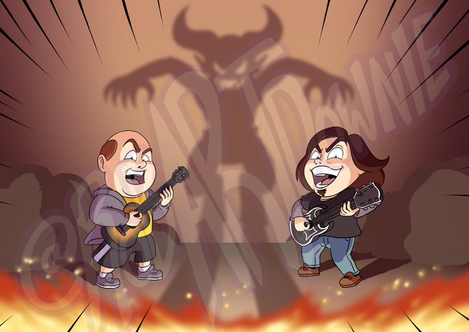 "Waaiit WAAAIIT waaiiit you motherfuckeeeerr! We challenge yoouu to a ROCK OOOOFFF!" #Inktober #Inktober2020 #InktoberDay31 #artcommission #cartoon #fanart #drawing #artforsale #comics #sketch #digitalart #tenaciousd #Halloween @jackblack @theactualkylegass #davegrohl