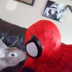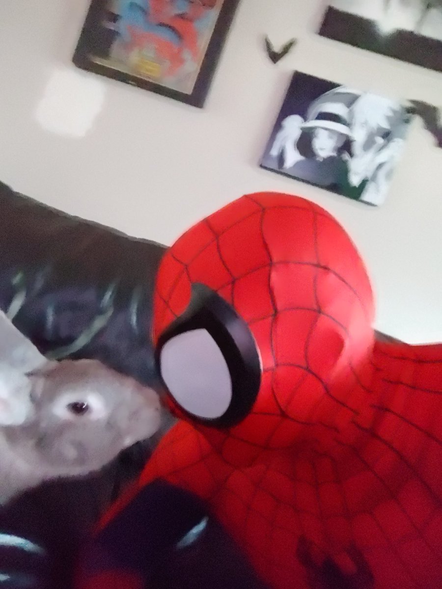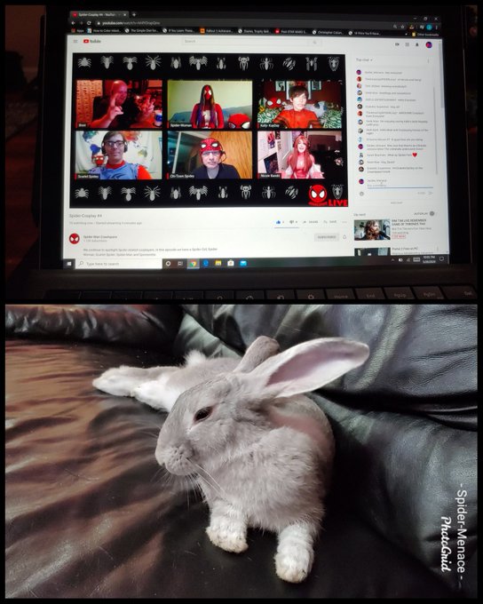 Did some Spidey stuff yesterday. Got a "boop of approval" little miss Doomy. Suit by @spidey4fun #Spiderman #Cosplay #cosplayer #bunny #rabbit #rabbitdad #flemishgiant #ThunderandDoom #BugsBunny