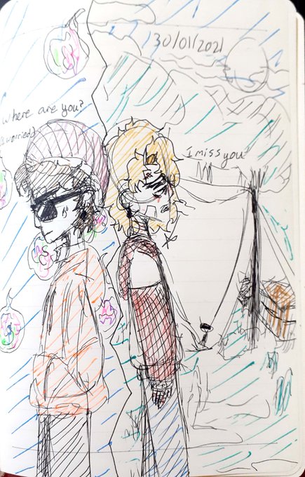 Drew this in art class. Scenery and art style inspired by @bbsub3 ‘s soft mod oneshot. A bit of Deo’s looks are from @frostthesnowgay (I really like the freckles ><) #deofanart #ranboofanart #tommyinnitfanart #timedeofanart #FNFSoftMod @tommyinnit @TimeDeo @Ranboosaysstuff