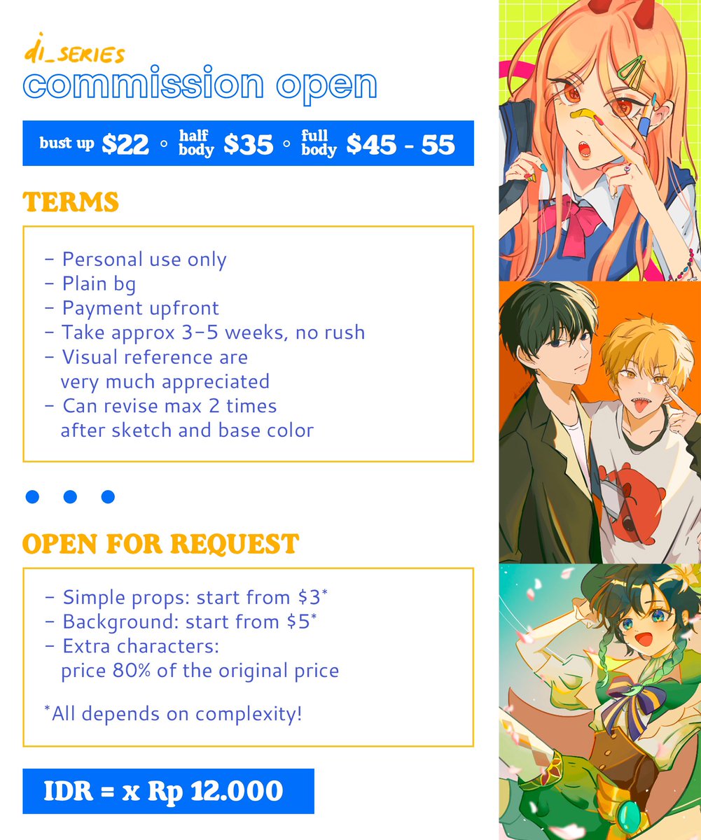 Hello I'm open commission for local (indonesia) and international :D Price details, how to order and TnC: ryundere.carrd.co Open for limited slots as much as i can. Thank you (◠‿◠)