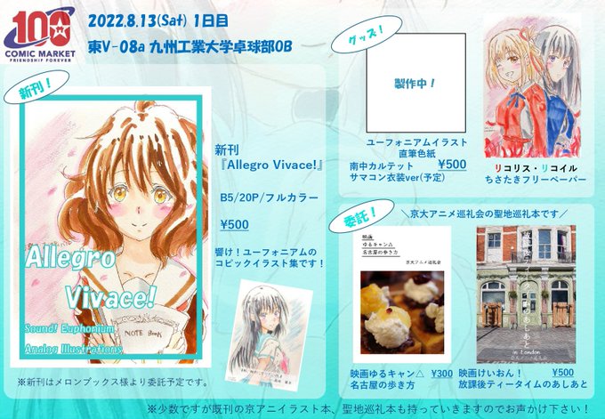 【#C101 告知】 「Allegro Vivace !」夏コミで頒布したユーフォのアナログイラスト本も持っていきます🎺 メロンブックス様より通販もありますので、よろしければ🙇♀️ 🍈→ melonbooks.co.jp/detail/detail.…