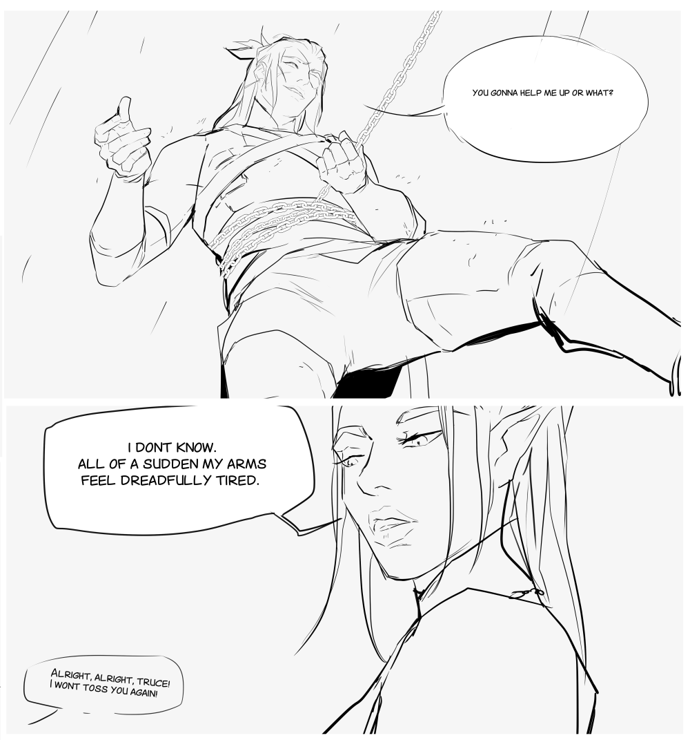 Part 2 of my Witcher au. Val and Rhasire at a tavern. This was just a pain to draw. #dnd #TheWitcher #witcher #WITCHERS #dnd #dndart #dungeonsanddragons #dnd5e #dndoc #dndart #digitalart #digitalillustration #sketch